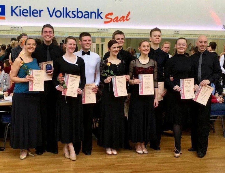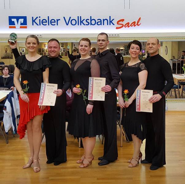 den 3. Platz von 5 Paaren und im Latein den 1. Platz von 3 Paaren und konnten somit einen Pokal aus Kiel mit nach Hause nehmen.