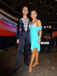 Ausgeruht und gestärkt waren wir am Samstag ca. dreieinhalb Stunden vor Turnierstart da. Eine etwa 20 Meter lange Schlange wartete vor dem Check-In. Sagenhafte 50 Minuten dauerte es bis wir dann dran waren. Kein Vergleich zu Antwerpen, wo in wenigen Sekunden die Anmeldung erledigt war. Dann musste ich noch schnell Make-up auftragen lassen, wir uns umkleiden und warm machen. Dann konnte die Weltmeisterschaft Senioren I Kombi mit 35 Paaren starten. Mit 89 von 90 möglichen Kreuzen kamen wir ins Viertelfinale. 11 Paare schieden aus. Auch die Runde der besten 12 erreichten wir problemlos. Jetzt ging es ums Ganze. Würden wir als Neulinge, die noch nicht in der Weltrangliste zu finden sind, eine Chance haben, ins Finale zu kommen? Wenn es nach der Meinung einiger deutscher Schlachtenbummler ging, dann ja. Wir waren mit unserem Tanzen zufrieden, auch wenn wir wissen, dass wir manches noch besser können. Dann spielte die Nervosität wohl doch ein wenig mit. Wir fanden, dass die dritte Runde insgesamt auch unsere bestgetanzte Runde war. Letztendlich belegten wir einen guten neunten Platz. Der achte Platz hatte nur ein Kreuz mehr als wir und auch die Siebt- und Sechstplatzierten waren in greifbarer Nähe. Die Tendenz nach oben ist also da.